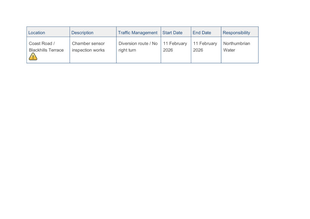 Please see list of proposed roadworks. For a full list of roadworks and road closures in the county please visit https://www.durham.gov.uk/roadworks